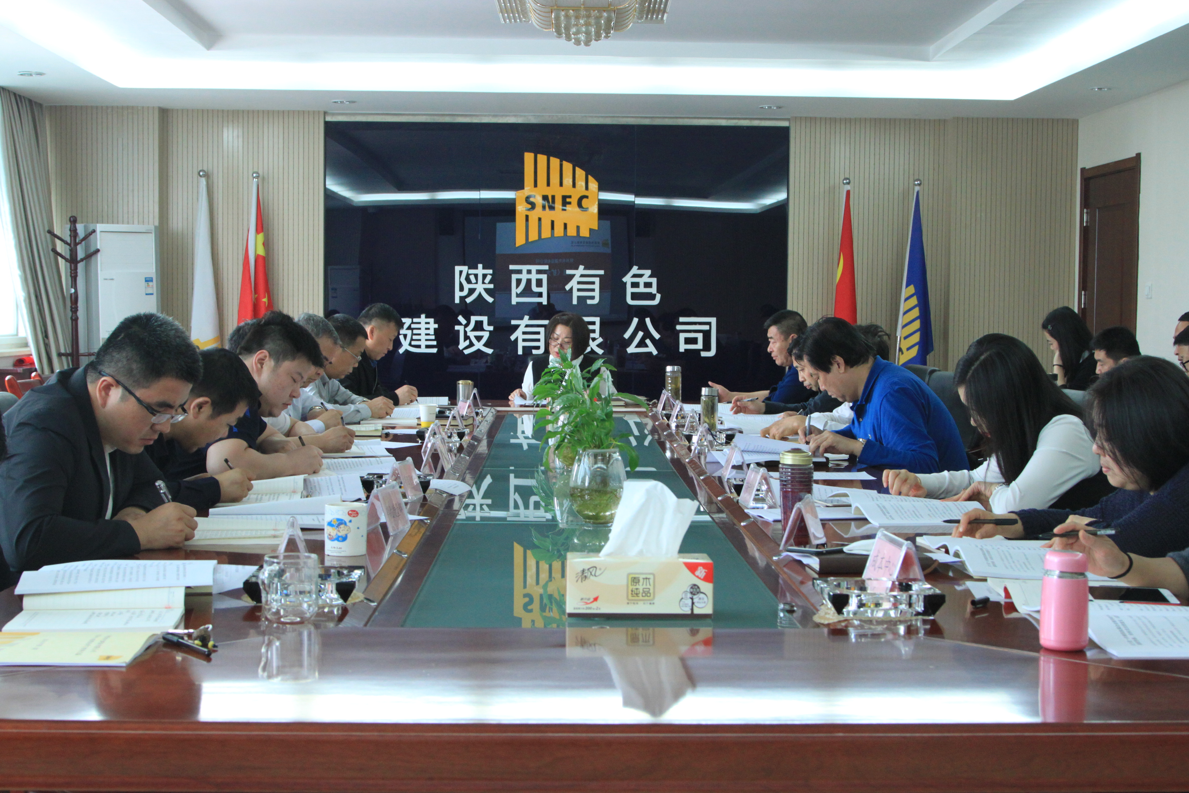4月23日,陜西有色建設有限公司2018年第二次黨委中心組理論學習在四樓會議室舉行。公司各領導、紀委委員、各部門負責人、支部書記、支委等30多人參加會議。公司黨委書記、董事長盧曉嵐主持會議。