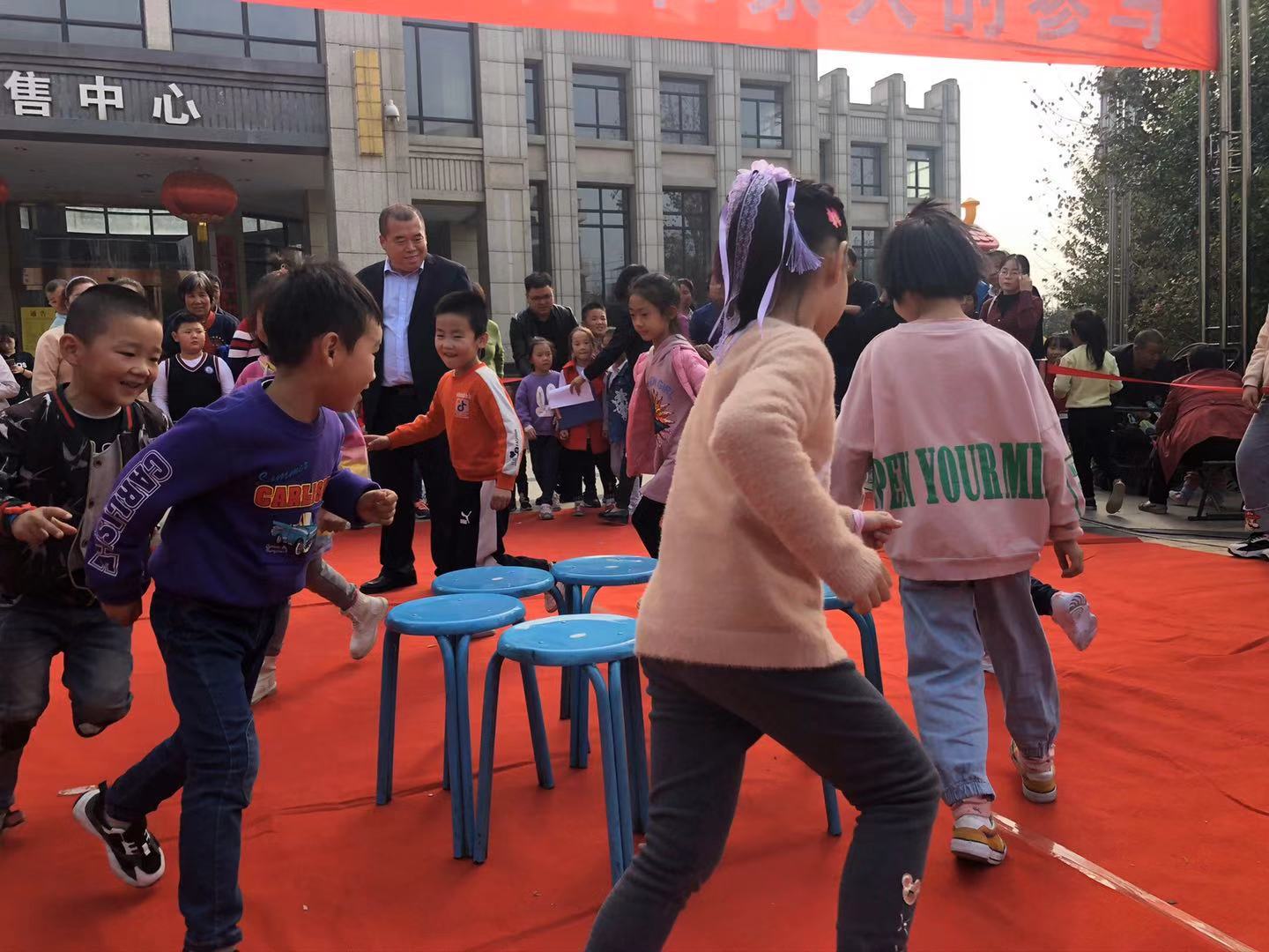 下午14:30趣味運動會正式開始,本次運動會共設6個項目:神投手、抬轎子、搶凳子、氣球粘紙杯、摸石頭過河、拔河等比賽。運動會當天,200余小區居民熱情高漲,摩拳擦掌,帶領著小朋友們積極參與。