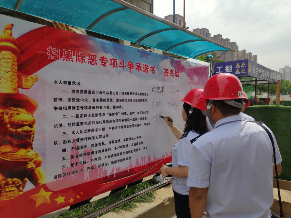 此次宣傳活動是為了進一步落實習近平總書記關于開展掃黑除惡專項斗爭的重要指示精神,針對當前建筑業掃黑除惡新動向,全面開展專項治理,不斷推進“掃黑除惡”專項斗爭工作向縱深開展。宋曉軍副局長帶領稽查局工作人員對西安鵬潤悅秀城二期2.1標段項目現場施工管理人員進行宣講,并通過懸掛標語條幅、發放宣傳手冊、法治宣講、承諾公示牌簽字等方式,把中央和省市關于掃黑除惡的文件精神、相關法律法規及政策帶進施工現場,不斷提高現場施工管理人員對掃黑除惡專項斗爭的知曉率,積極營造全民參與掃黑除惡的濃厚氛圍。