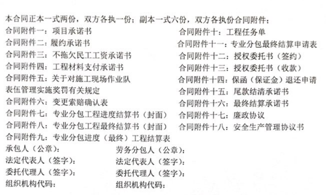 此類合同附件是主合同的重要組成部分,反映的是發包企業的內部管理控制措施與風險防范機制形式表現。附件內容著眼于管控與市場透明化這一目標,顯示的是合同的公允性與專業化規范管理機制。一般情況下,此類附件在投標過程中已部分提供。履約過程中,項目部管理人員應嚴格按照合同附件所提供的報量表、結算表填制完成,避免審核周期過長,影響發包方支付進度款。