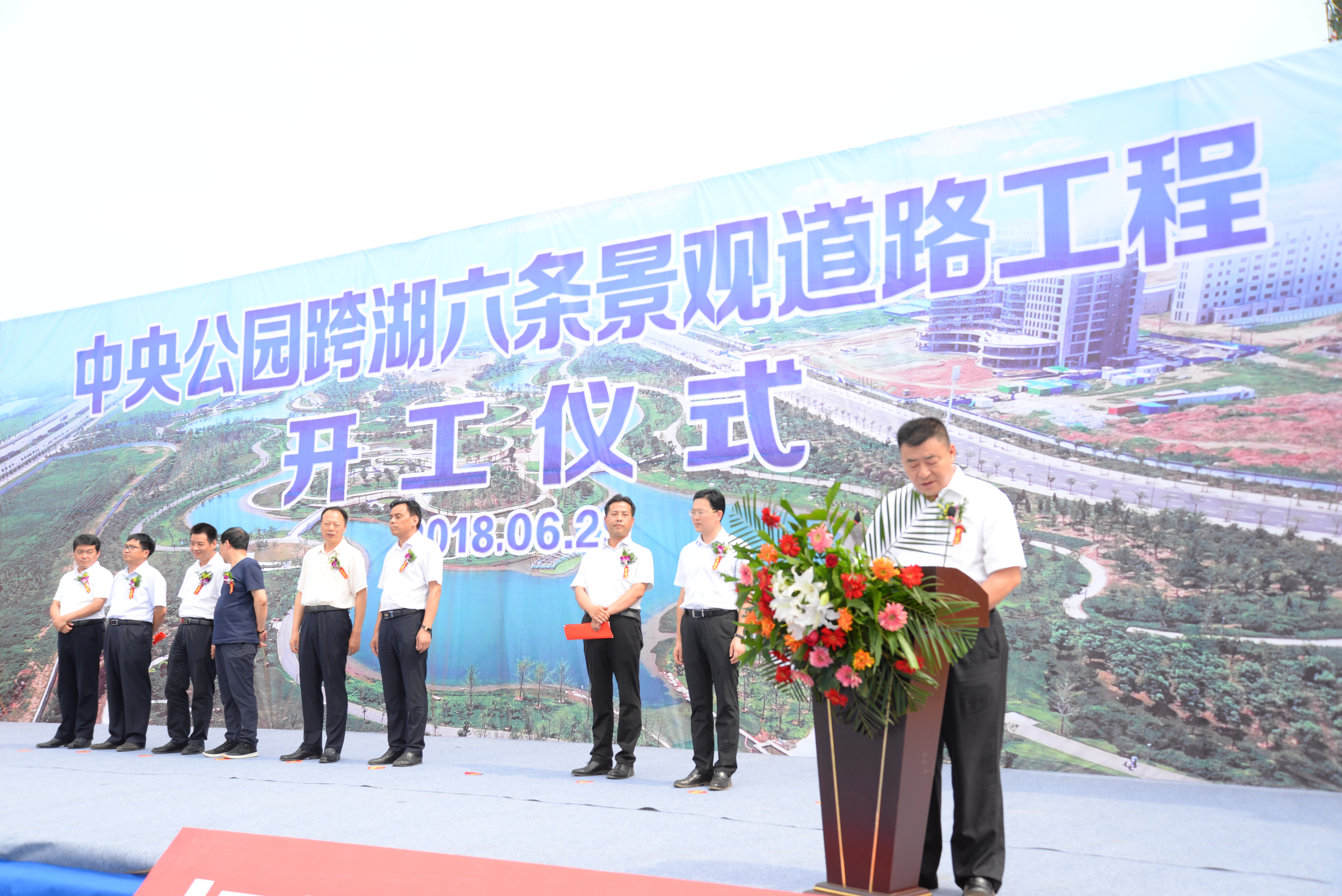 近日,由公司承建的汝州市中央公園跨湖六條景觀道路工程開工儀式順利舉行。汝州市人大常委會主任張留華、副市長范響立,住建局、工信局、電業局等相關單位負責人,有色陜建副總經理李七一參加了開工儀式,住建局黨組書記、局長裴學文主持儀式。